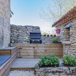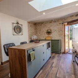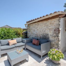 Originally housing the bread oven for the farmhouse, the gîte has been renovated to provide modern style and comfort. Inside, you’ll find a newly installed kitchen, bathroom, and flooring that blend contemporary design with rustic charm. Outside, there is a new seating and dining area, creating an ideal space to relax and enjoy the peaceful surroundings.