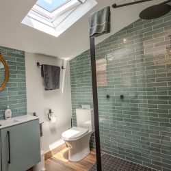 The bedroom, also accessed from the hallway, is beautifully furnished with a comfortable double bed. There’s plenty of storage in the wardrobes and drawers to keep your belongings neat and tidy.