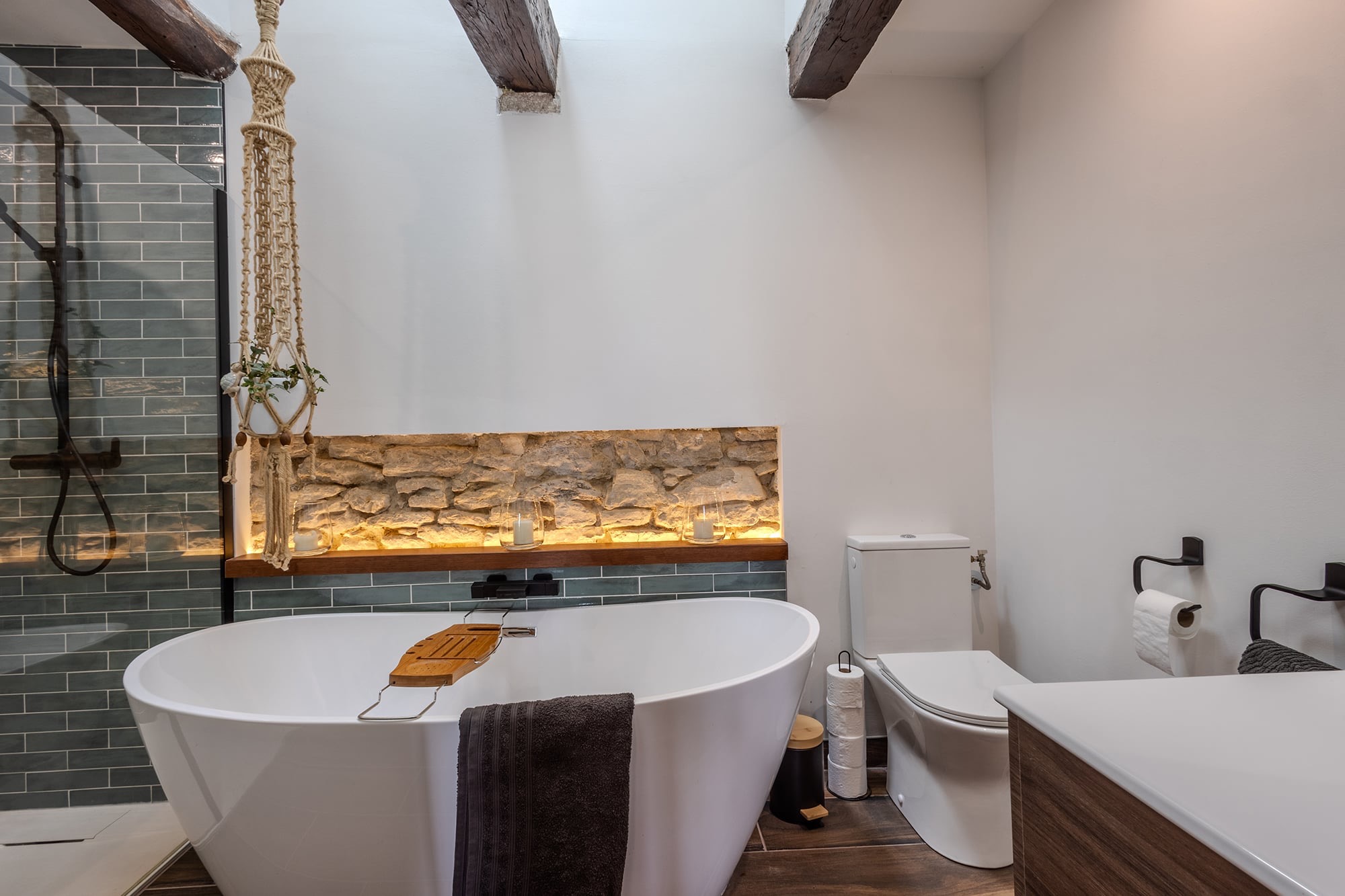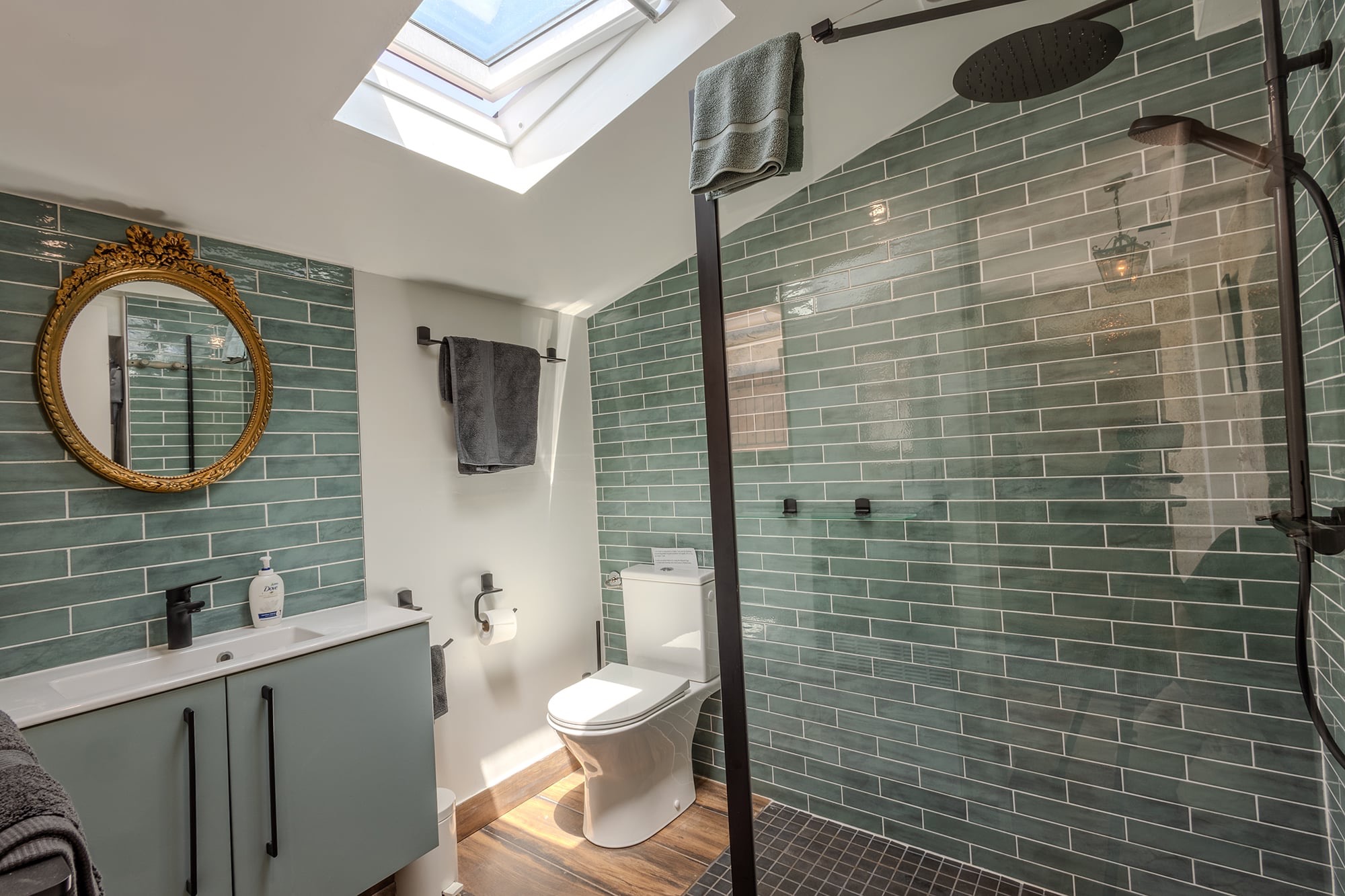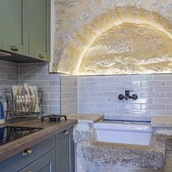 The fully-fitted, well-equipped kitchen, situated on the ground floor, is a modern culinary haven! It comes with an induction hob, an oven, a microwave, and a dishwasher. There’s also a coffee and tea station, a wine fridge, and a large American-style fridge/freezer for added convenience. A comfortable four-seater dining table allows you to enjoy your meals in style.