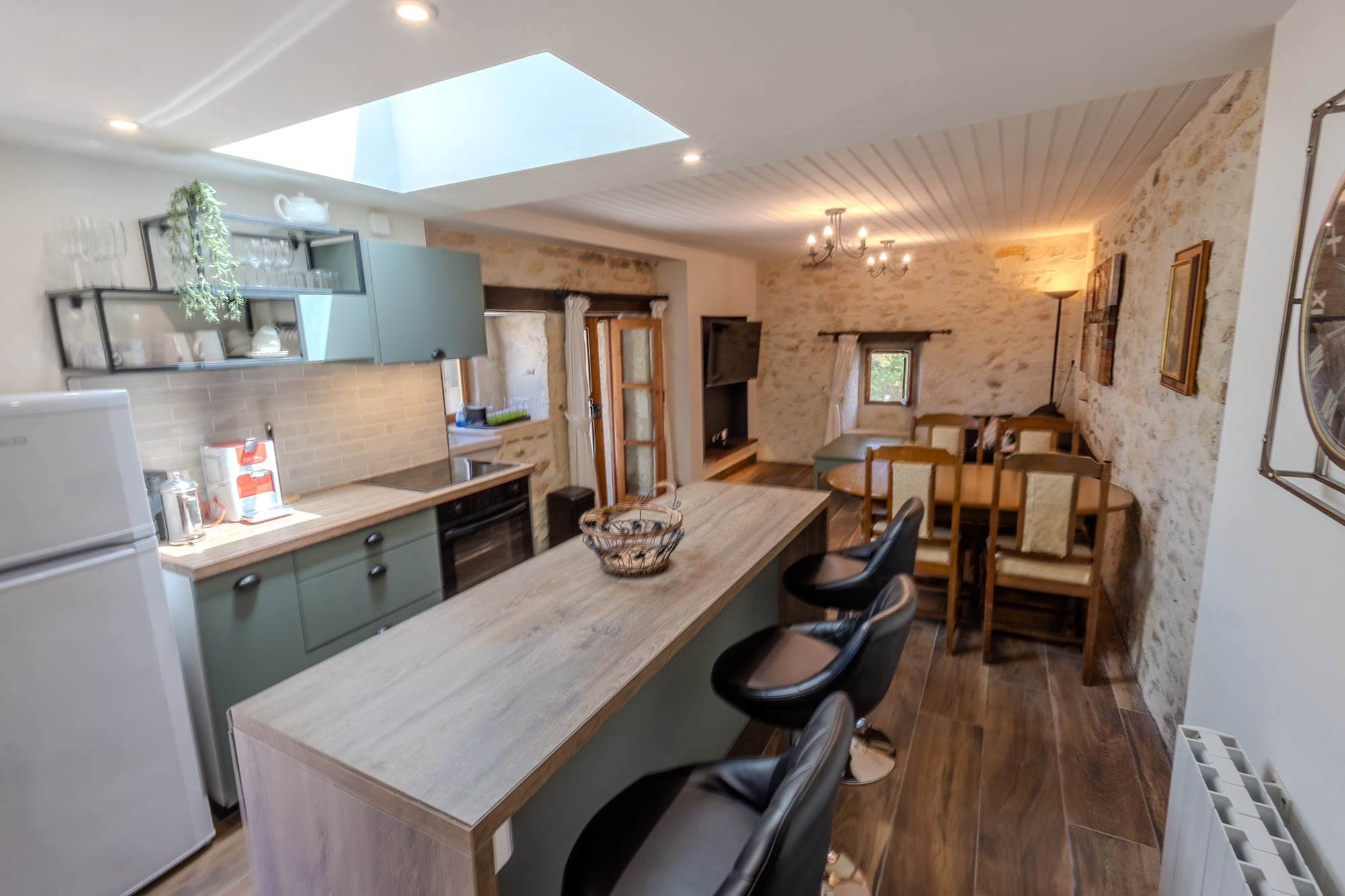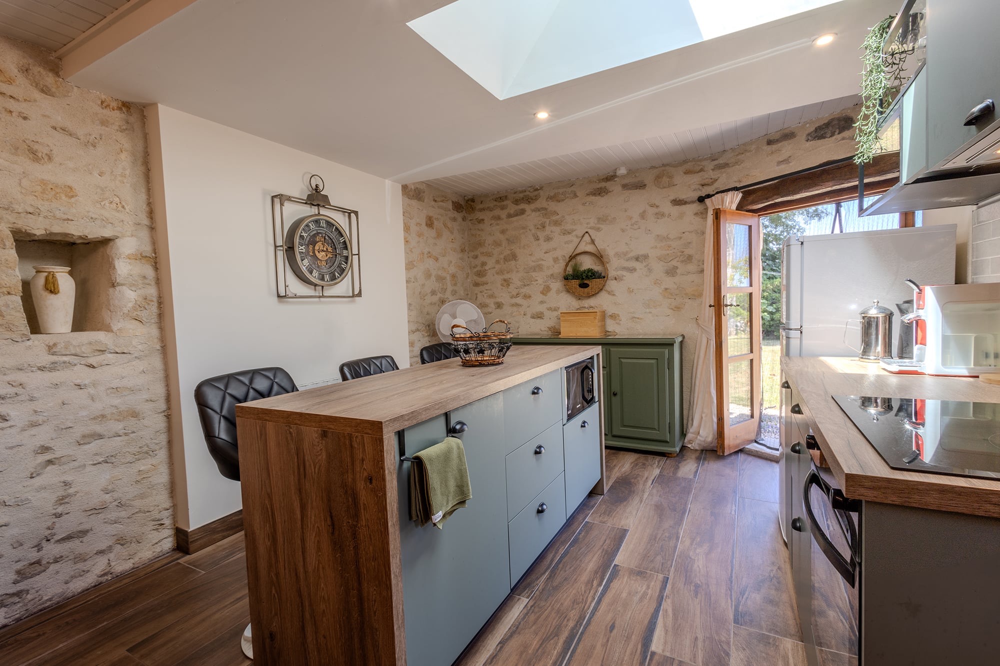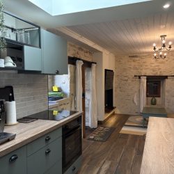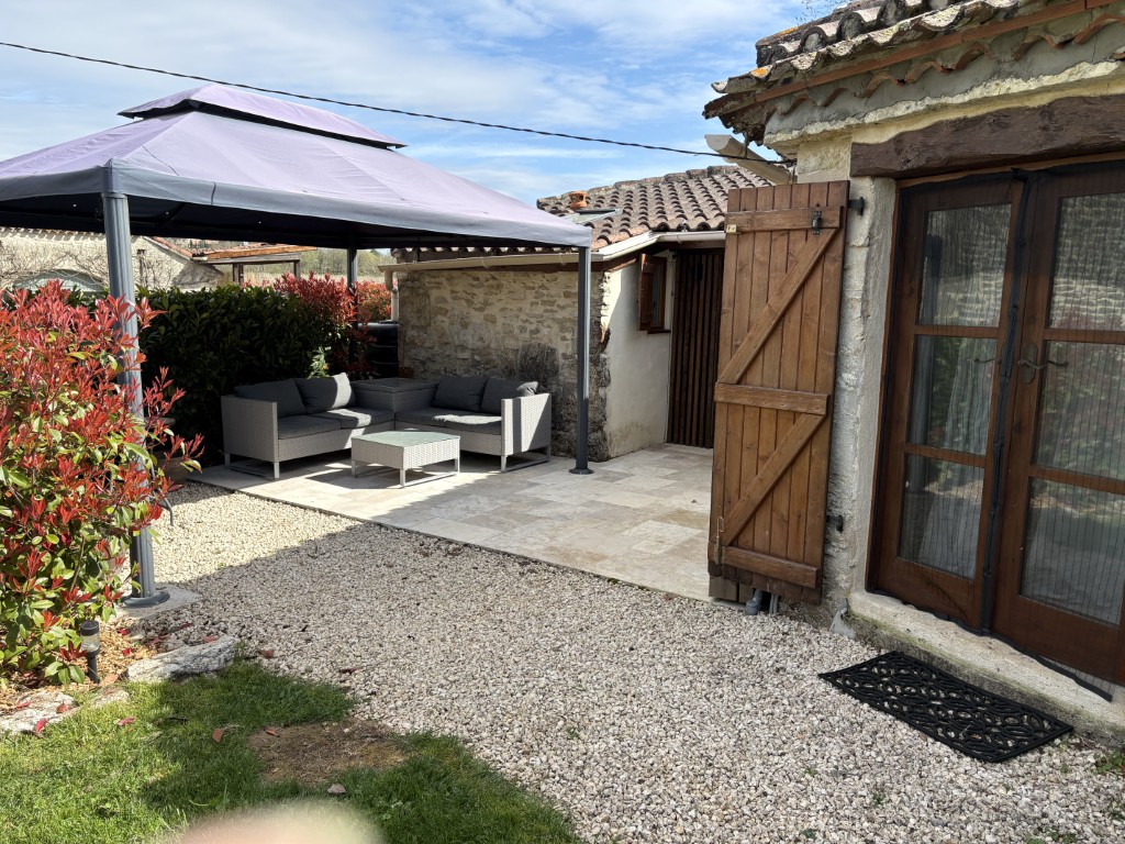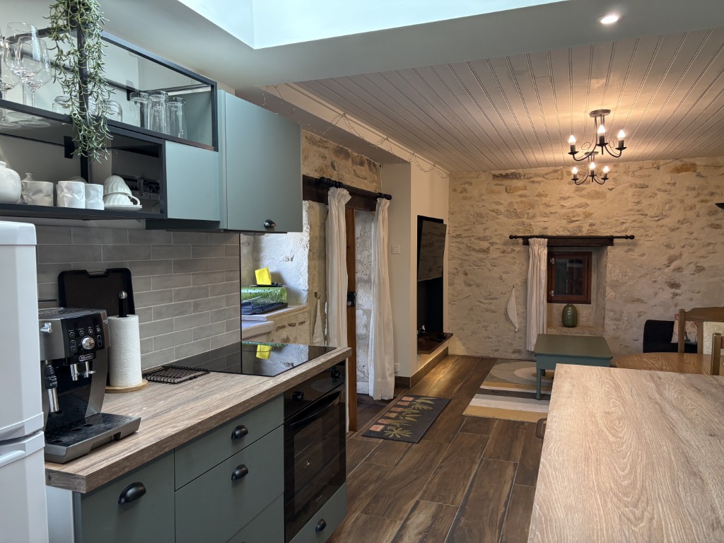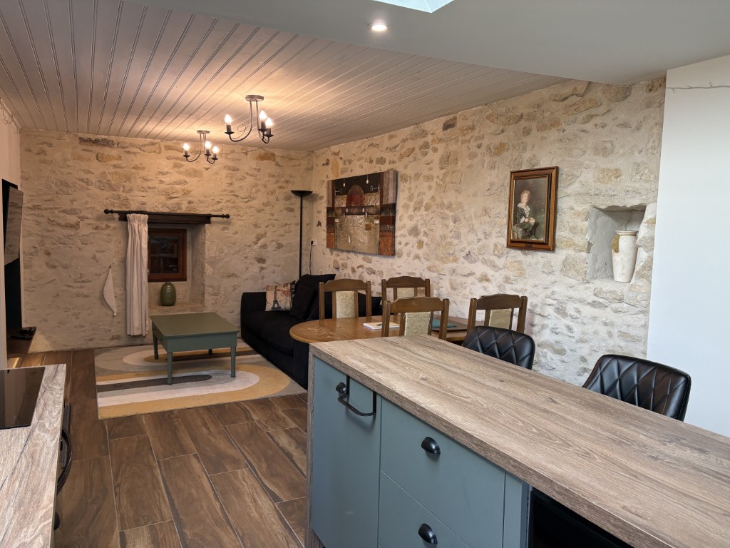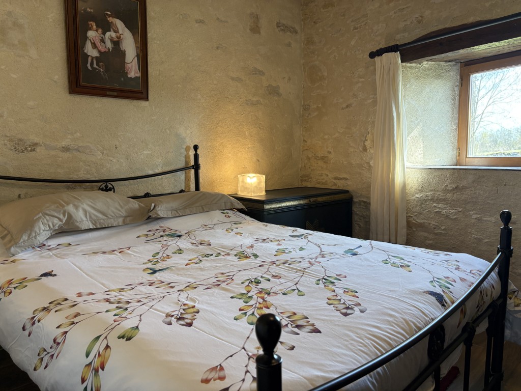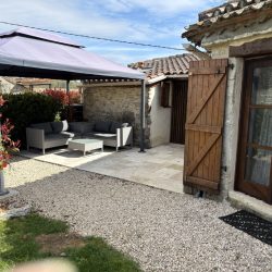 Originally housing the bread oven for the farmhouse, the gîte has been renovated to provide modern style and comfort. Inside, you’ll find a newly installed kitchen, bathroom, and flooring that blend contemporary design with rustic charm. Outside, there is a new seating and dining area, creating an ideal space to relax and enjoy the peaceful surroundings.