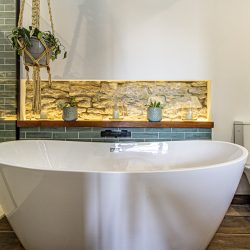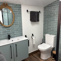 The bedroom, also accessed from the hallway, is beautifully furnished with a comfortable double bed. There’s plenty of storage in the wardrobes and drawers to keep your belongings neat and tidy.